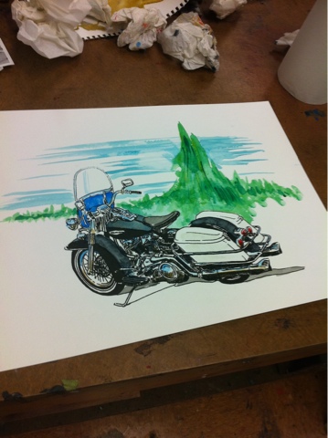 I paint watercolors. And sometimes they are of your 1969 shovelhead that only cost $25.00